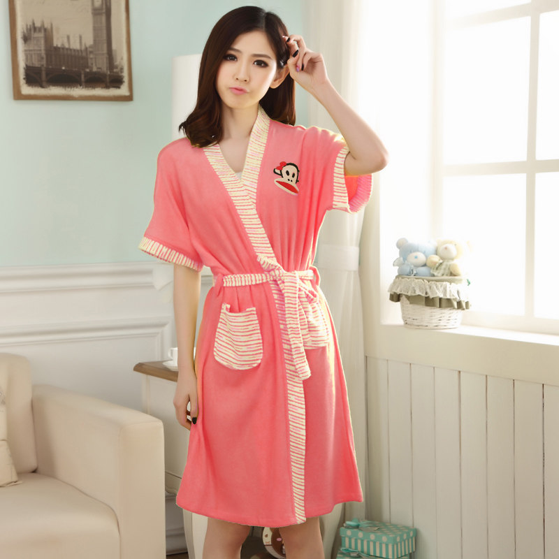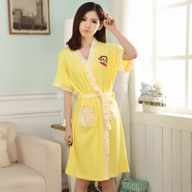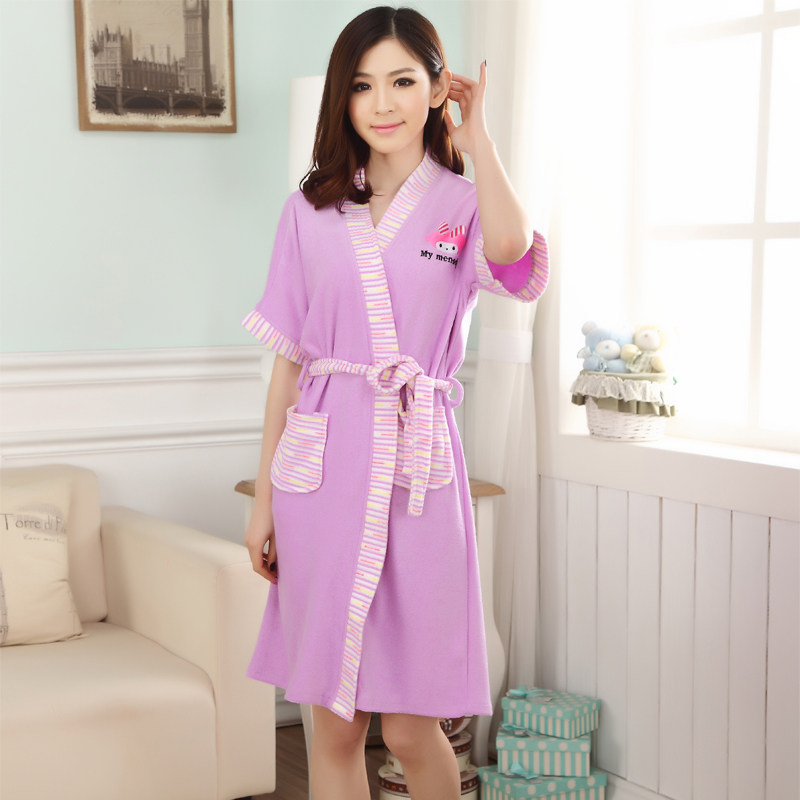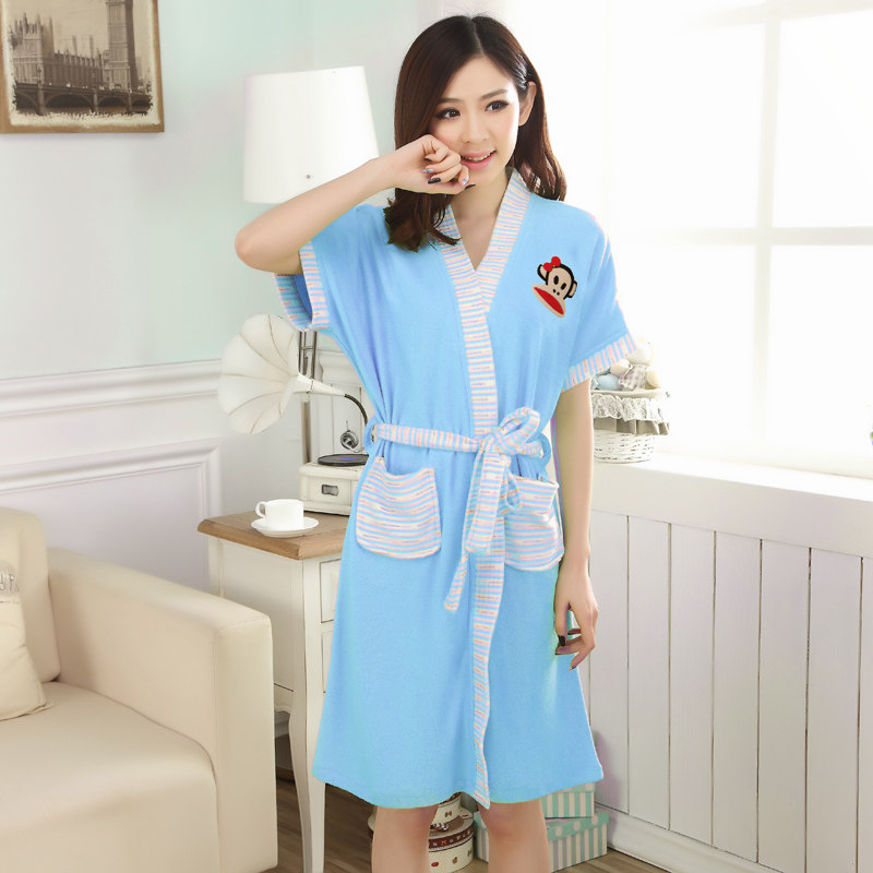 Printemps Mlle Xia Ji coton éponge peignoir chemise de nuit pyjama section mince à manches courtes femme coton été survêtement nuisette Informations techniques - Genre : jeunesse