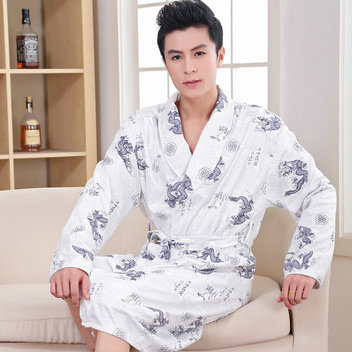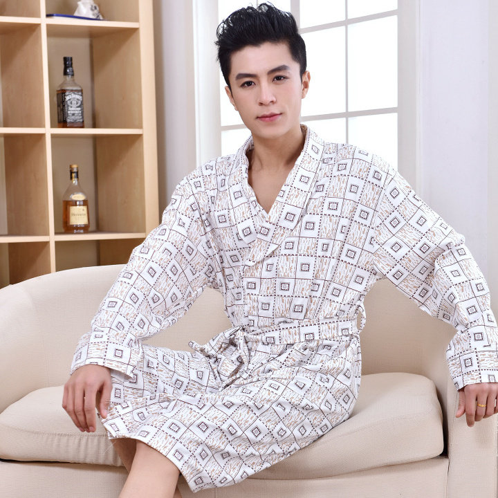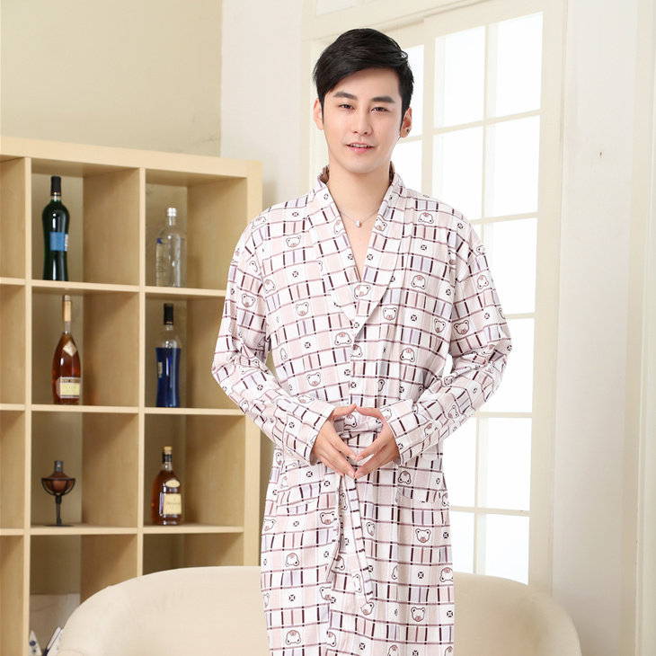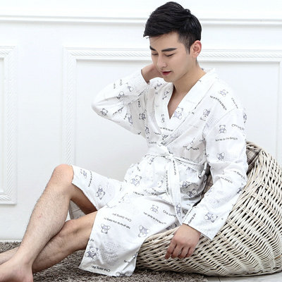 Le printemps et l'automne hommes coton à manches longues robe peignoir pyjama homme été section mince coton long paragraphe expédition de survêtement Informations techniques - Genre : jeunesse