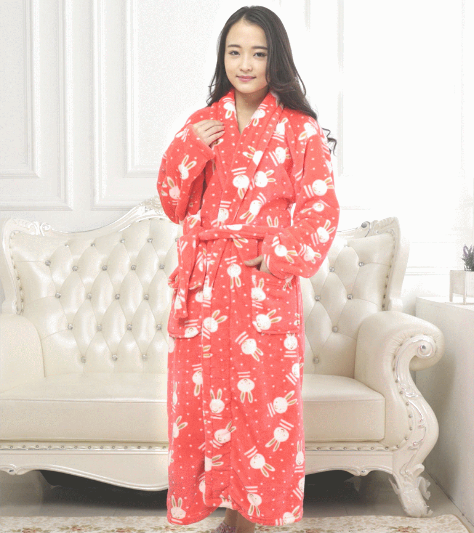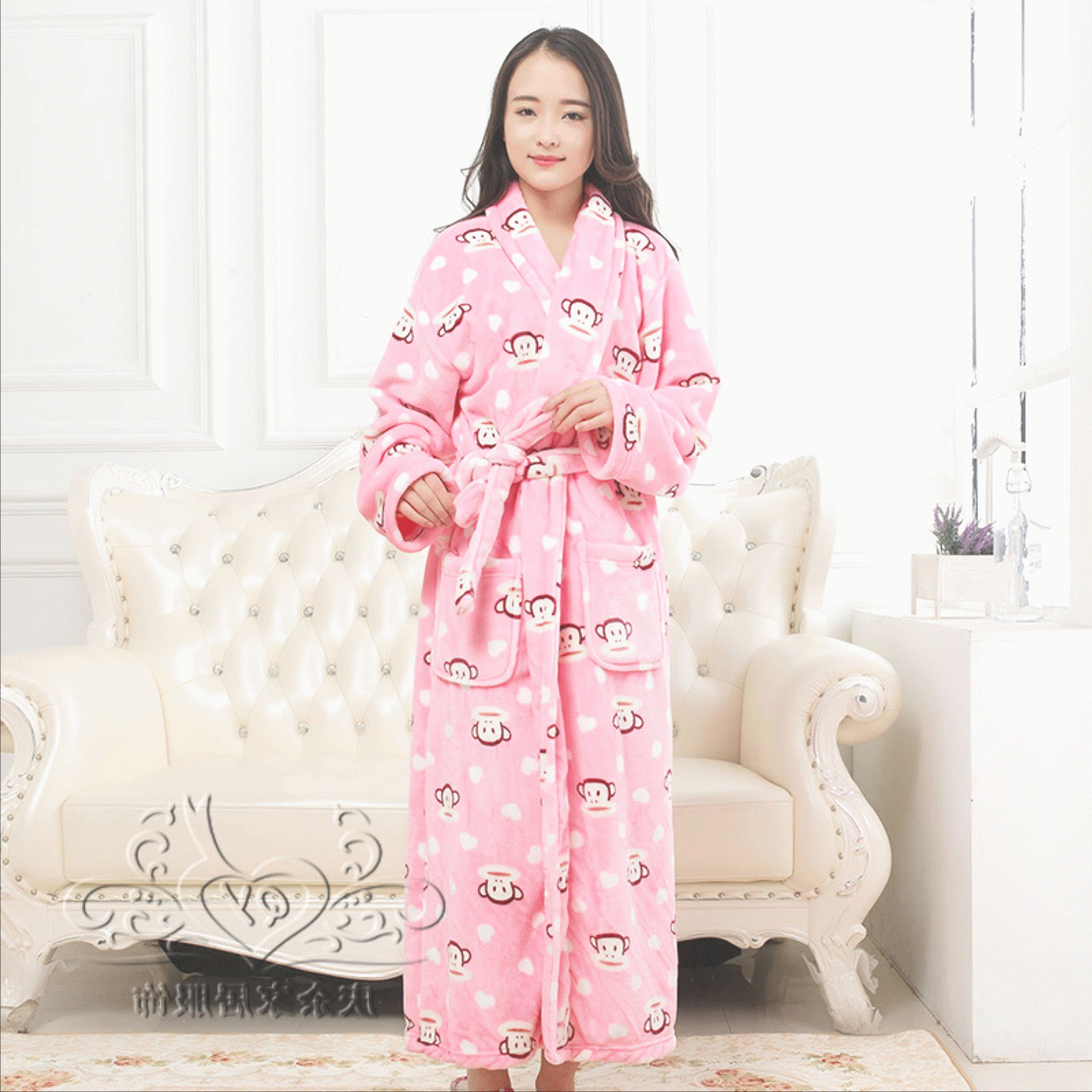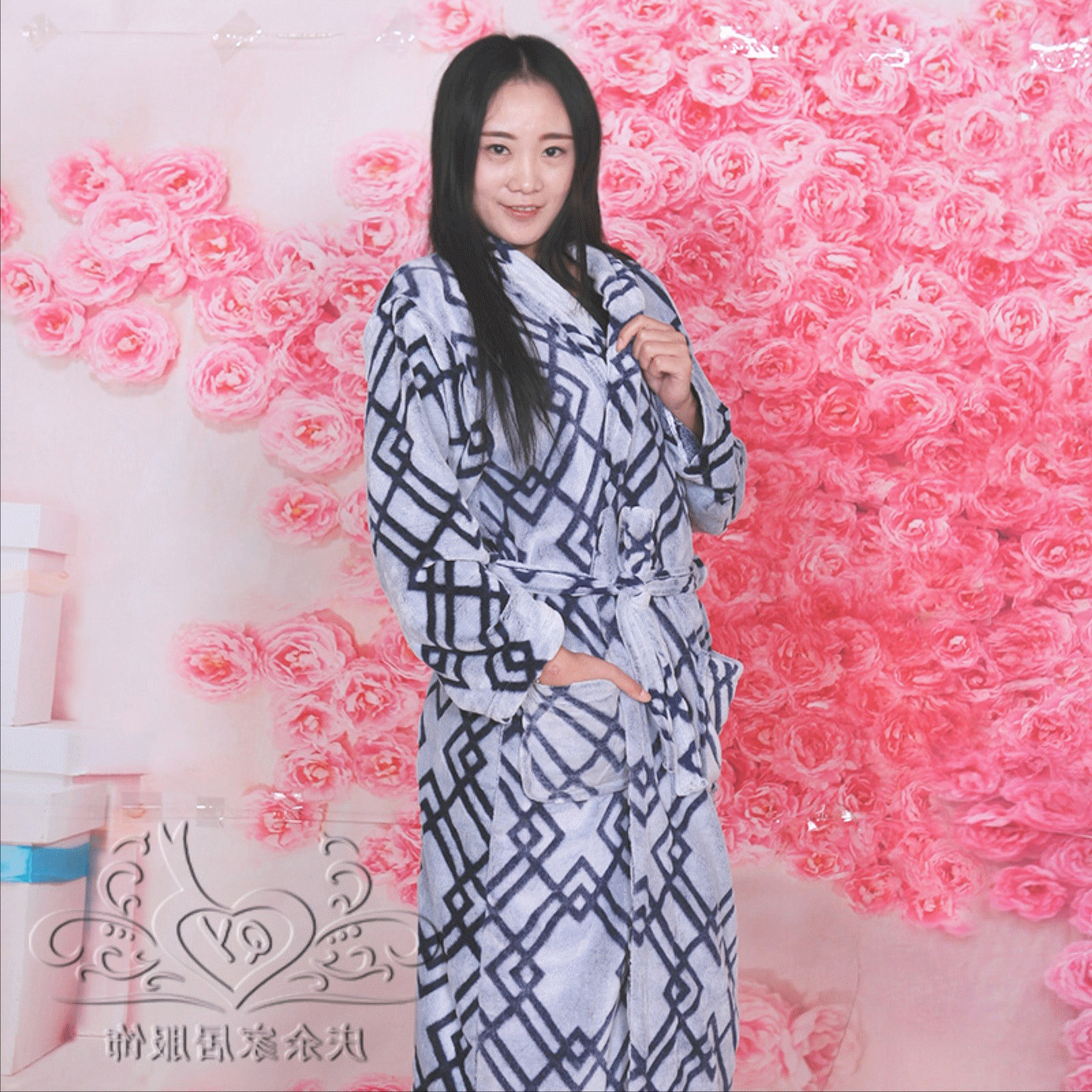Qingyu flanelle nightgown hommes et les femmes nightgown en automne et en hiver pyjama en velours corail peignoir peignoir service de couple maison épaisse Informations techniques - Genre : jeunesse