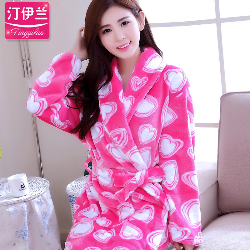 Robe peignoirs automne chemise épaisse survêtement de flanelle corail d'automne en velours et en hiver blanc bleu clair à manches longues Informations techniques - Genre : jeunesse