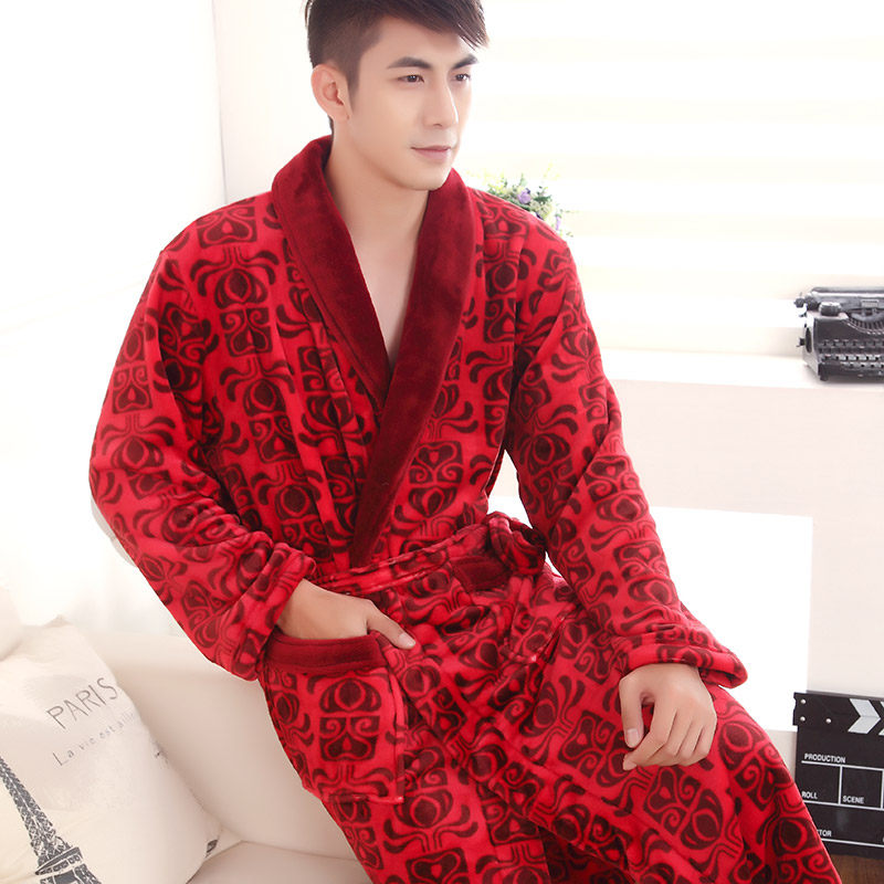 automne et hiver épais nightgown de flanelle peignoir hommes d'homme épais velours corail automne hiver nouveau voilier à manches longues Informations techniques - Genre : jeunesse