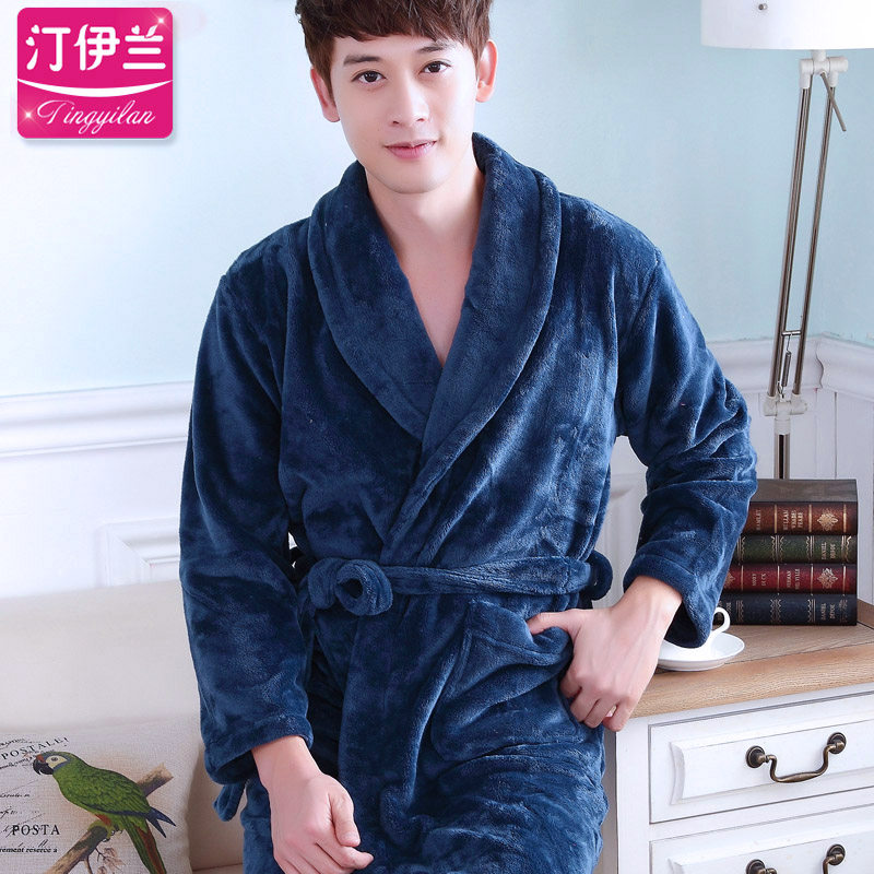 occasionnels peignoir solides Promotions automne et hiver épais flanelle nightgown pyjama en velours corail survêtement à manches longues hommes Informations techniques - Genre : jeunesse