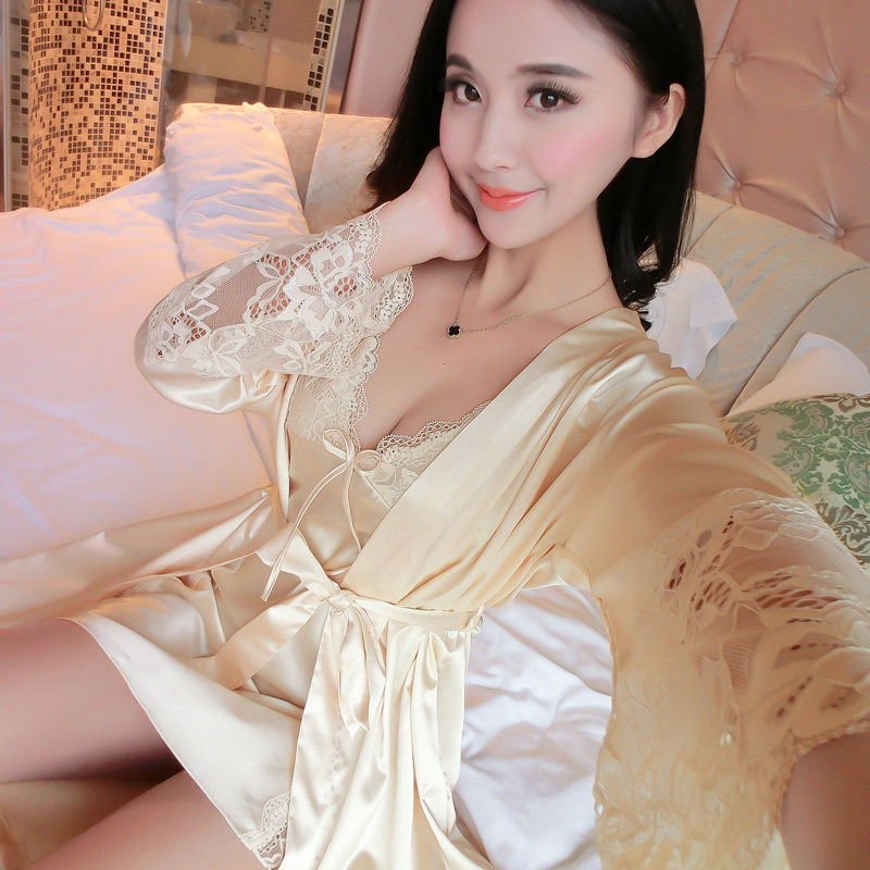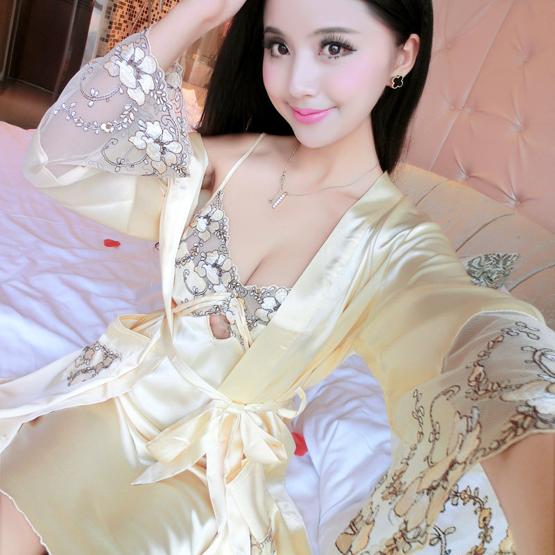 printemps Sexy et en automne manches longues peignoirs robe fronde chemise pièce survêtement pyjama de soie gros verges Informations techniques - Marque : lingsang