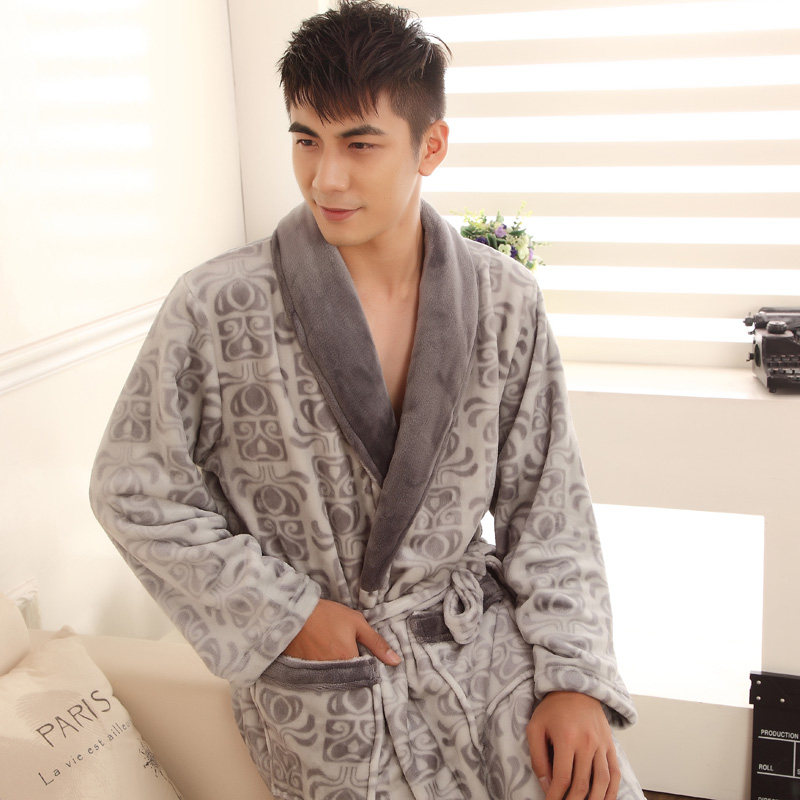 Mann mètres hommes nouveaux d'hiver impression plus épais flanelle nuisette pyjama peignoir peignoir hommes Informations techniques - Marque : Mishimang