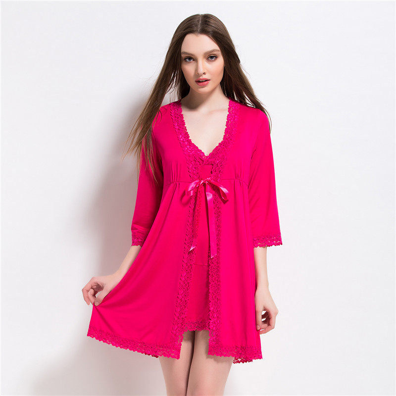 Mme automne et l'hiver manteau deux pyjama pièce de costume nuisette sexy manches en dentelle Modèle unie survêtement peuvent être personnalisés Informations techniques - Genre : jeunesse