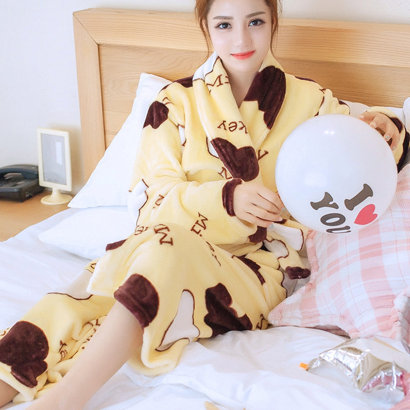 Automne et hiver chaud velours corail robe femmes manches longues chemise belle chemise de nuit grands chantiers flanelle nightgown femmes survêtement Informations techniques - Genre : jeunesse