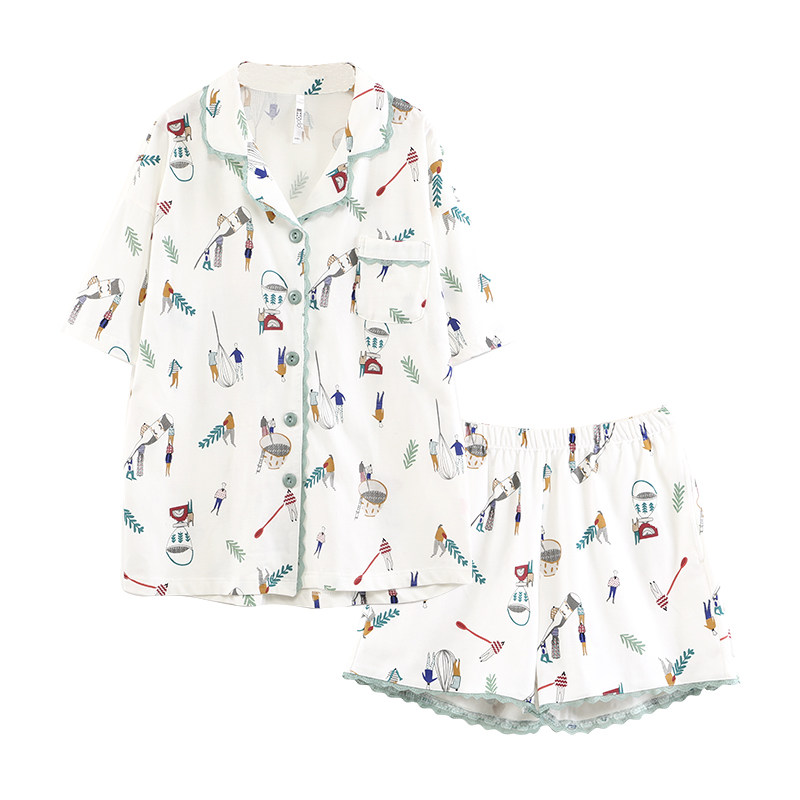 Pyjama pour femme HODOHOME en Coton à manche courte - Ref 2992176