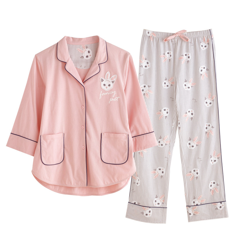 Pyjama pour femme MOOLMEYNO en Coton à neuf manches - Ref 2993897