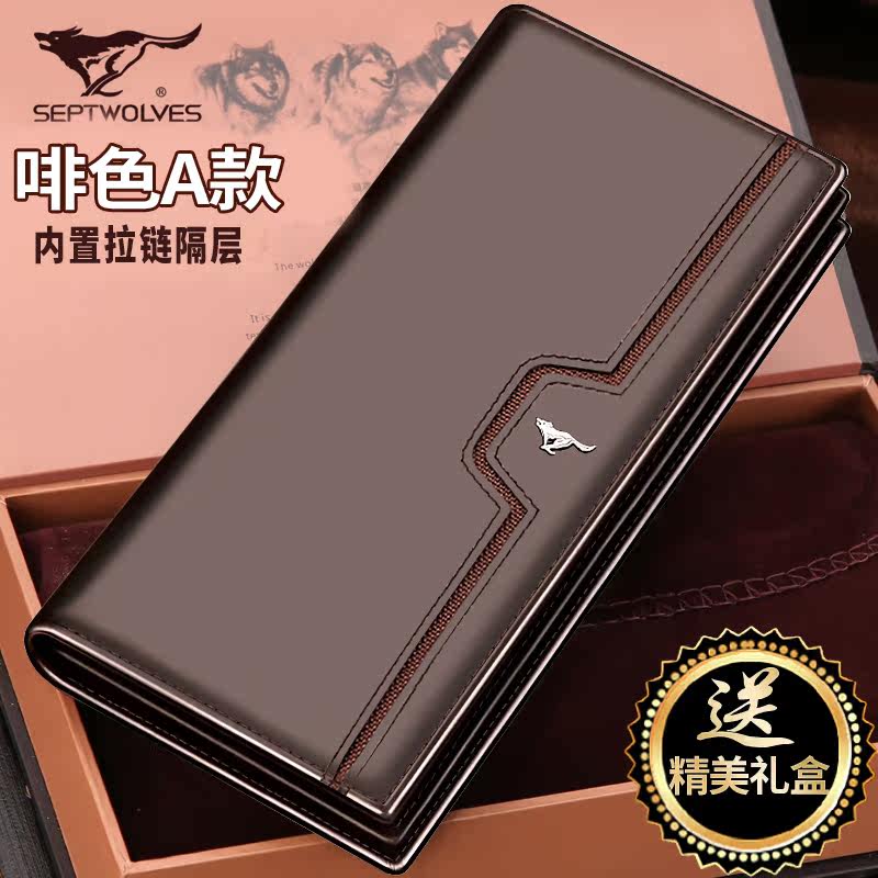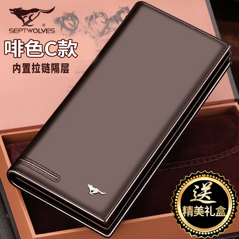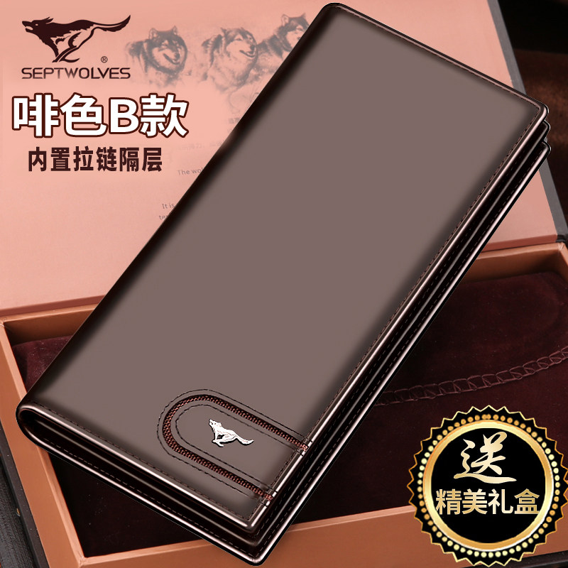 2016 nouvelle longue section sept loups en cuir portefeuille hommes d'en-tte de l'argent couche de sac en cuir zippe portefeuille carte mince Informations techniques - appropri : jeunesse