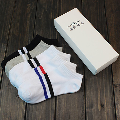 Deux barres chaussettes chaussettes bateau chaussettes pour hommes chaussettes de sport à base bouche peu profonde chaussettes invisibles été pour aider les chaussettes bas homme boîte-cadeau Informations techniques - Style : QD-004