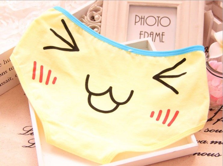 expédition coton gratuites filles sous-vêtements dessin animé mignon étudiants visage de smiley moins de coton triangle sous-vêtements féminins de gros Informations techniques - nombre : 1