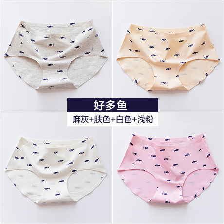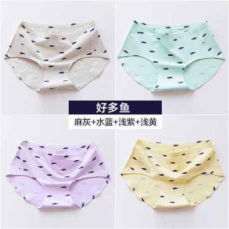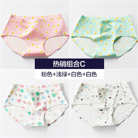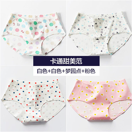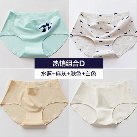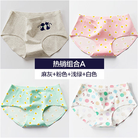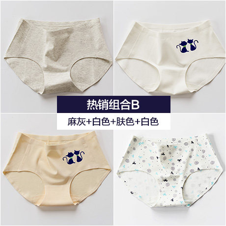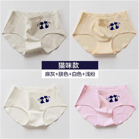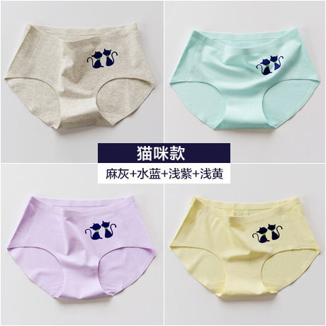, Quatre chargés, Coton sous-vêtements sans couture printemps féminin et été section mince Mme taille des mémoires de coton d'impression chat Informations techniques - nombre : 4