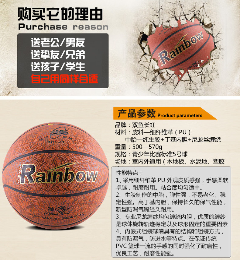 Ballon de basket DOUBLE FISH en PU - Ref 1989018