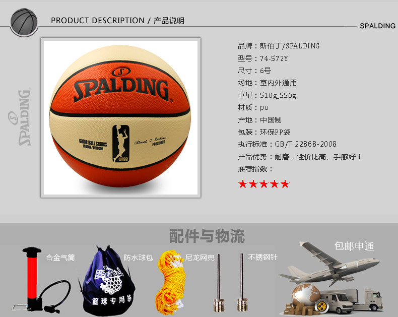 Ballon de basket SPALDING en PU - Ref 2000248