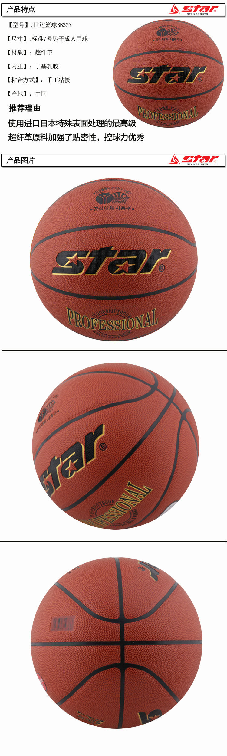 Ballon de basket STAR en ZK microfibre - Ref 2000813