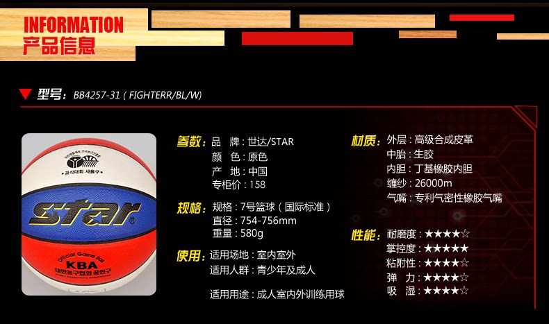 Ballon de basket STAR en PU - Ref 1991433
