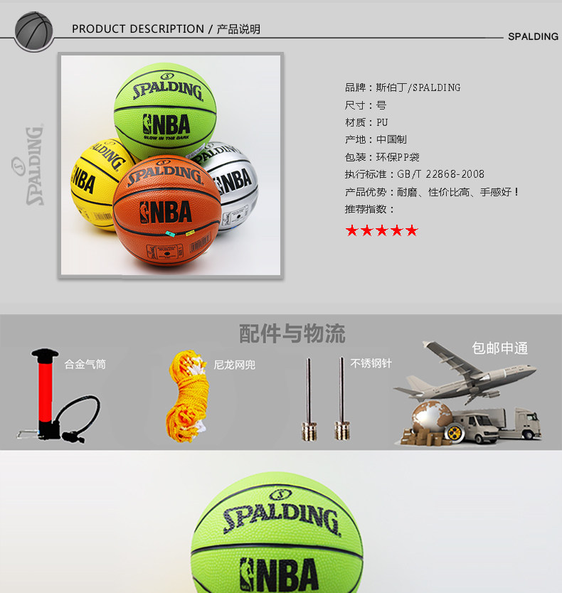 Ballon de basket SPALDING en PU - Ref 2000112