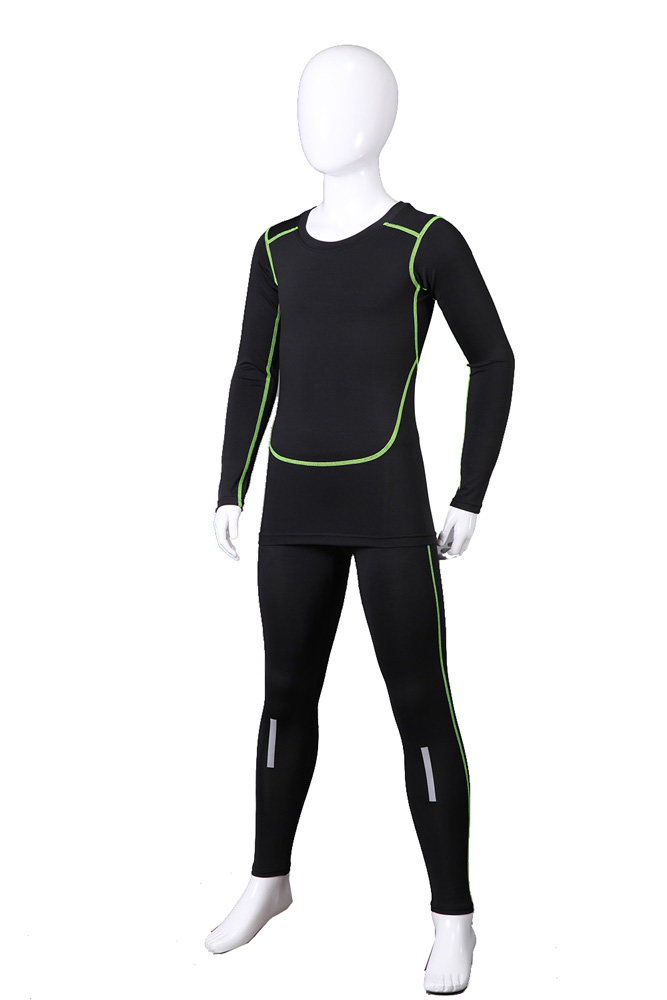 De plus collants de remise en forme de velours costume enfants talonnage automne et de soccer d'hiver la formation de basket-ball élastique survêtement à manches longues Informations techniques - Modèle : Noir et vert, Tout noir, noir, vert