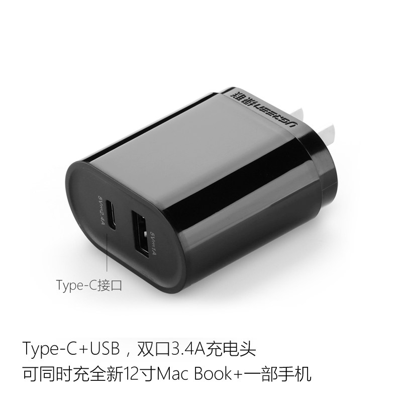 Green-liés Type-C Chargeur USB à deux ports tête de la nouvelle multi-port chargeur de téléphone portable Mac Book USB-C