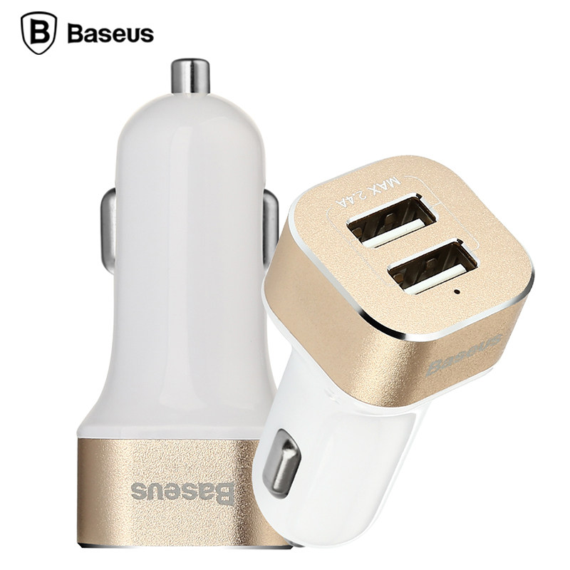 Dual USB Car Charger Blanc et or