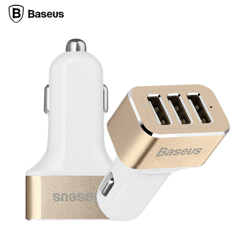 chargeur de voiture Trois USB Blanc et or
