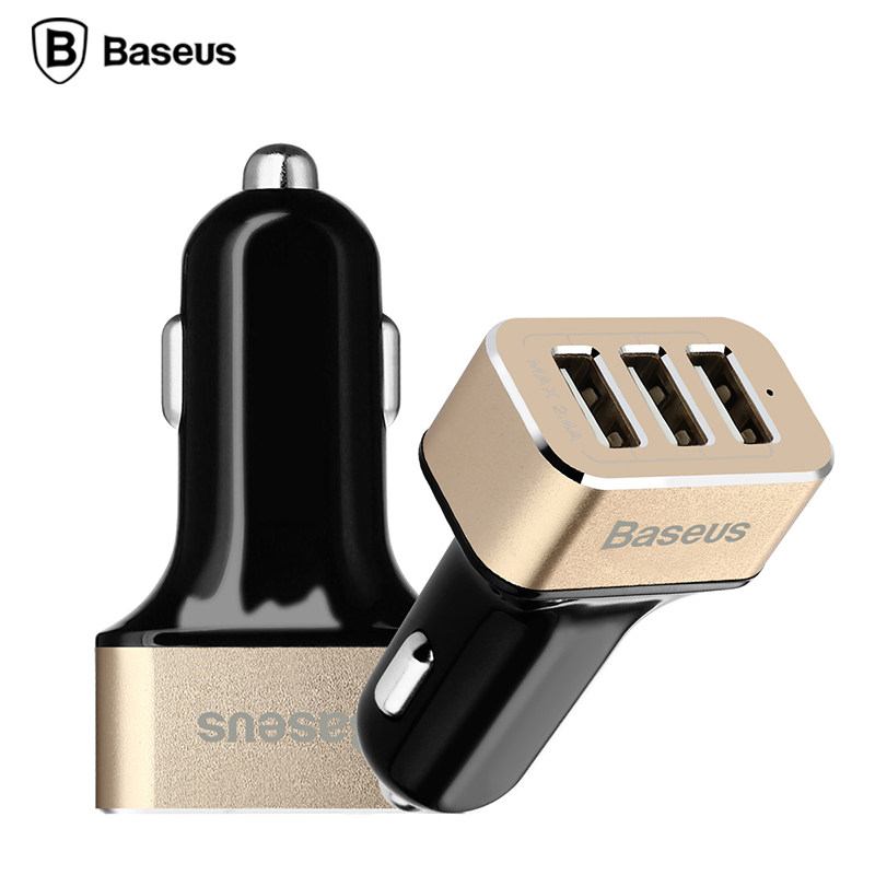 chargeur de voiture Trois USB Noir et or