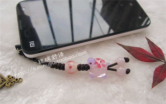 , langue verre Shu, Dragonfly jade nom paysage longévité de tortue était perle poussière cerise bouchon téléphone pendentif rose