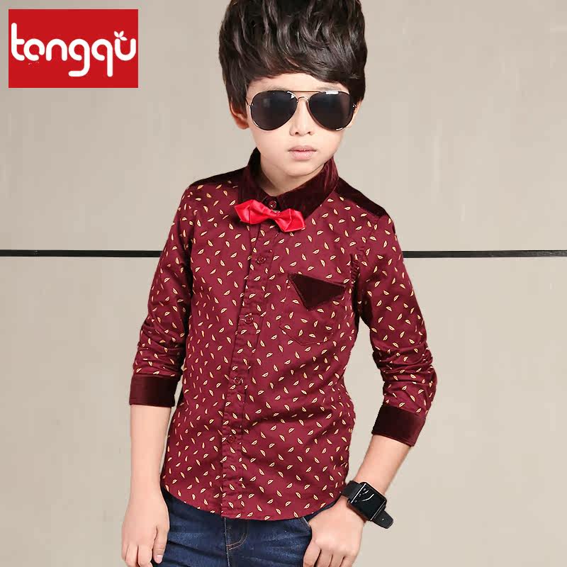 Chemise garçon XIAOQUXIONG à manche longue en Toile de coton - Ref 2076264