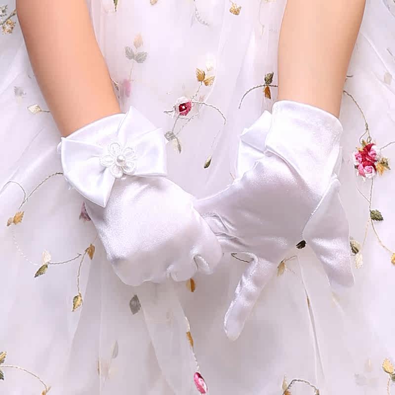 Les enfants se déguisent avec des gants blancs fille fleur robe de princesse gants court paragraphe montrent gants accessoires de performance pour les filles