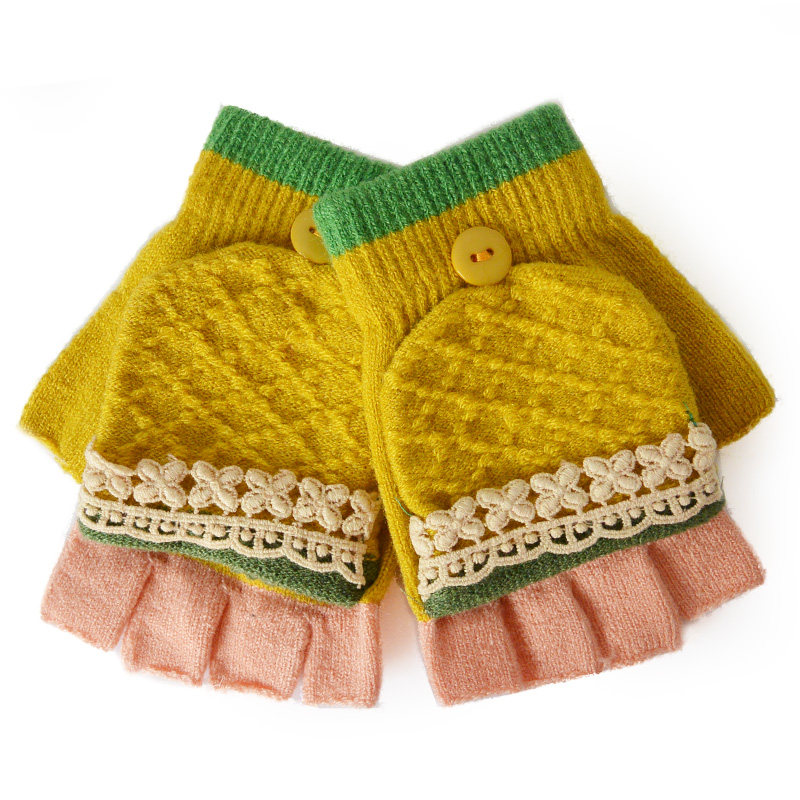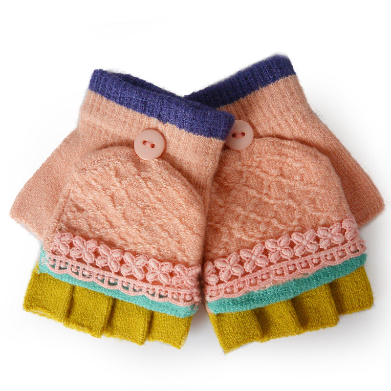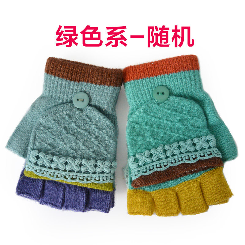 New hiver grandes filles vierges à clapet demi gants de laine doigt 2 gants tricotés gants chauds magiques Mme Informations techniques - Modèle : Army Green, azur, chocolat, rose, violet, rouge, vert, Modèle, bleu, brun, transparent, vin rouge