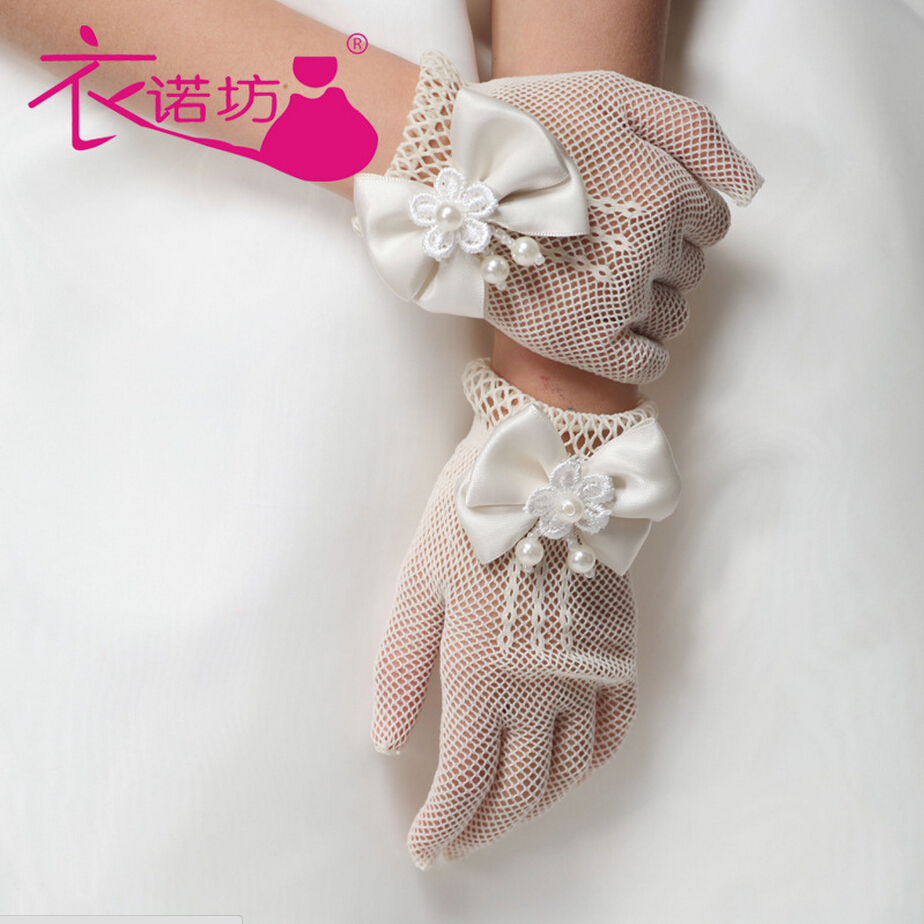 Enfants filles robe avec des gants arc beige gants de gaze gants de dentelle de fleur