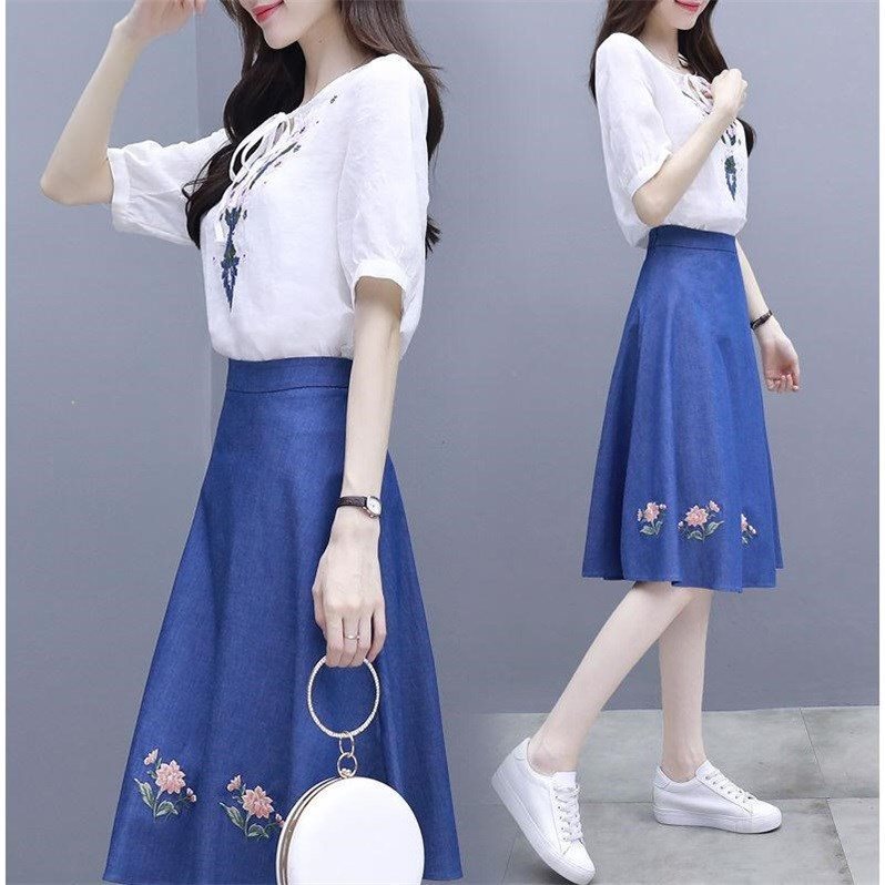 Costume femme BLEU BRODE en Coton - Ref 3334148
