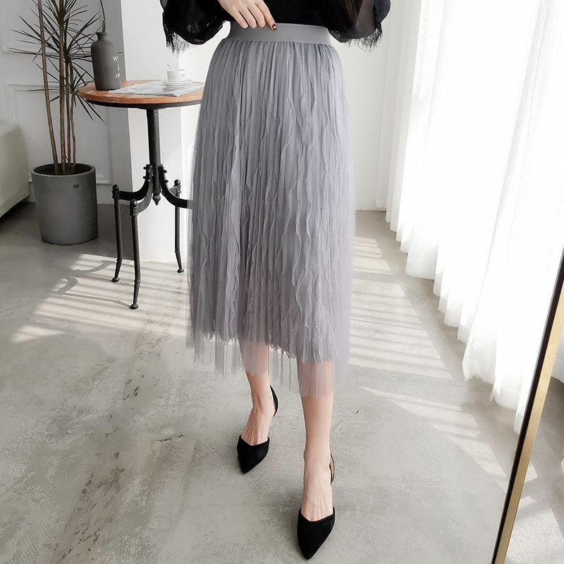 Printemps 2019 nouvelles jupes longues en maille double couche dames version ne des minces jupes plissées