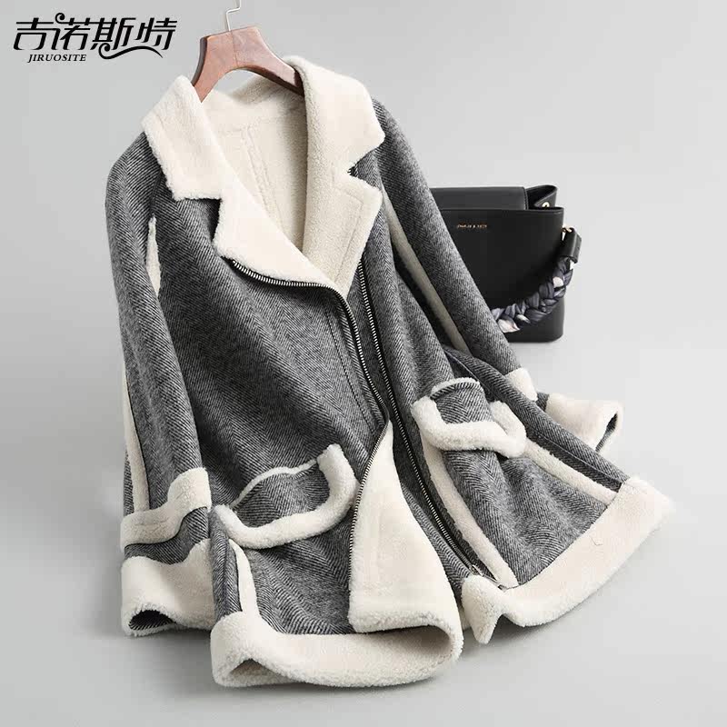 Manteau de cheveux d'agneau femme longue section Haining 2018 début d'automne nouvelle fourrure de laine anti-saison une couche
