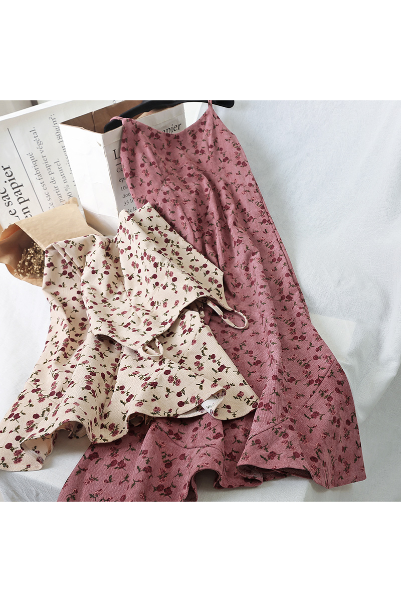 9296 jupe florale rétro femme tempérament robe à bretelles en V 2019 jupe mi-longue