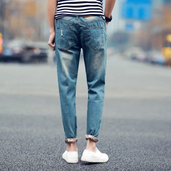 Jeans pour adolescent coupe droite METERS BONWE fibres élastiques coton polyester de cellulose régénérée en polyuréthane spandex automne - Ref 1479092