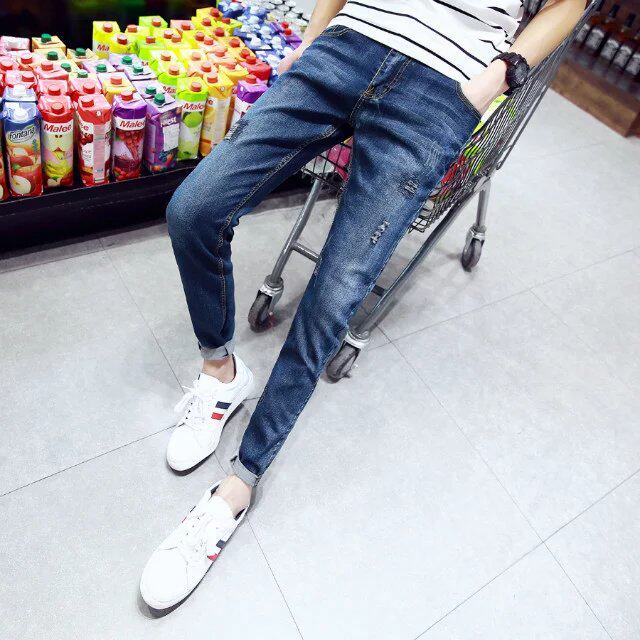 Jeans pour adolescent pieds Slim en coton été - Ref 1467709