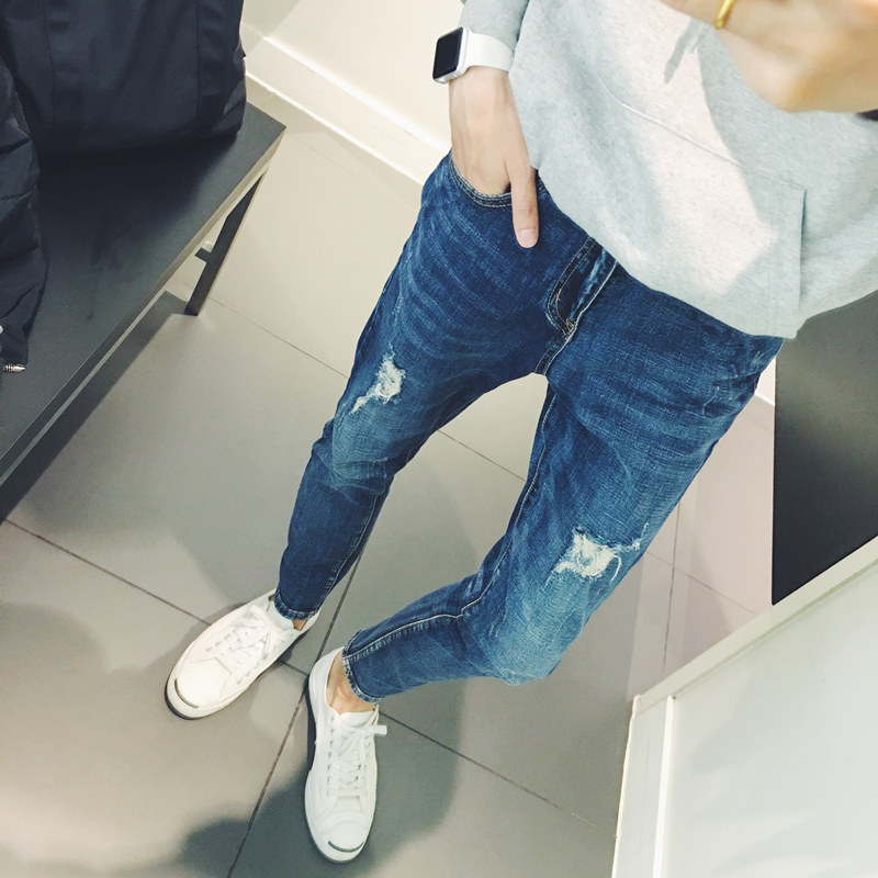 Jeans pour adolescent pieds Slim en coton Quatre saisons - Ref 1480628
