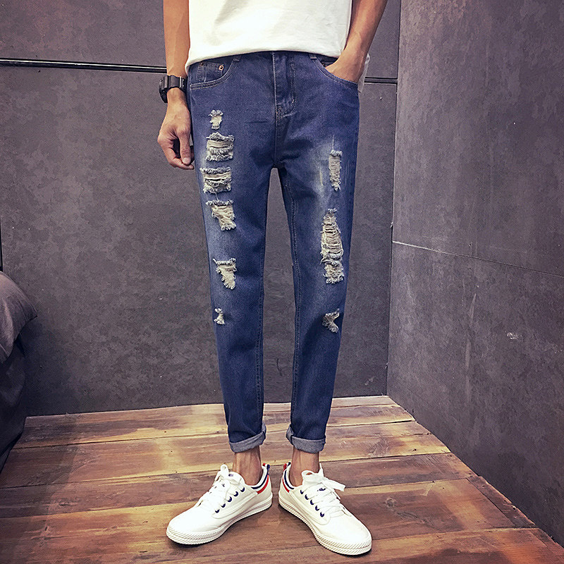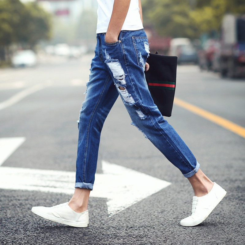 Jeans pour adolescent pieds Slim en coton été - Ref 1469801