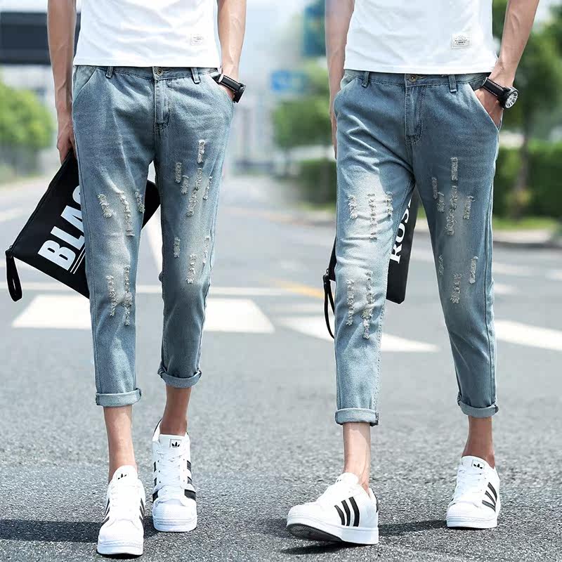 Jeans pour adolescent pieds Slim en coton été - Ref 1470320