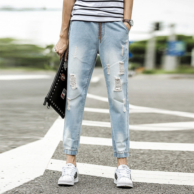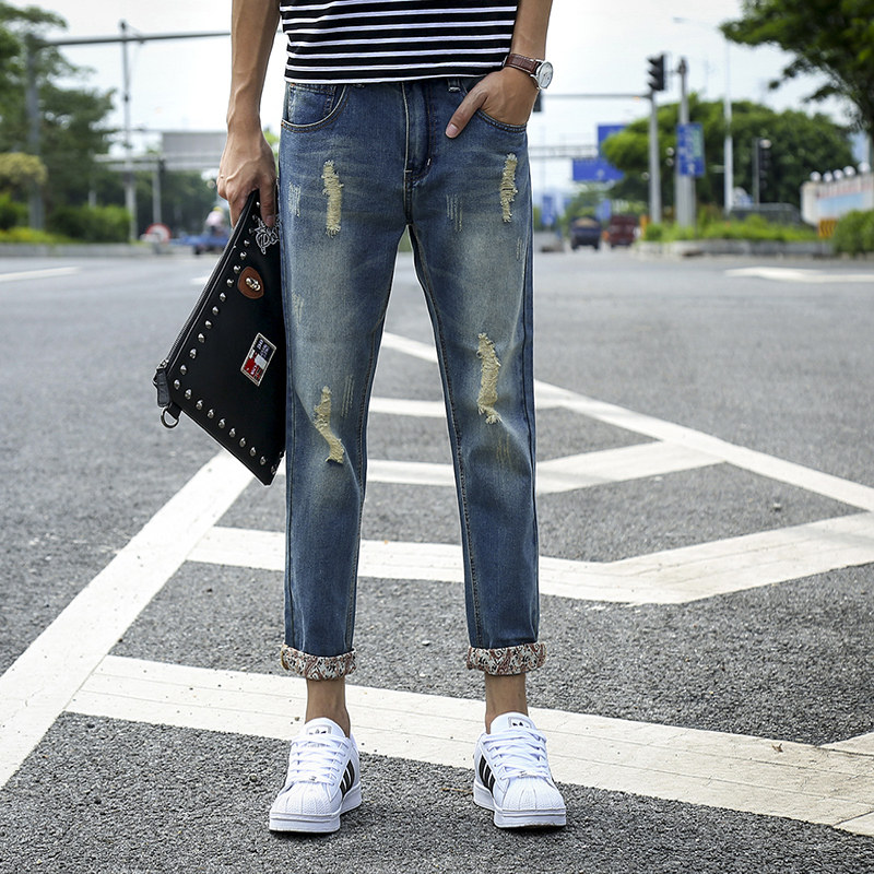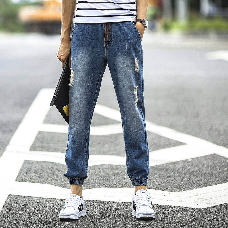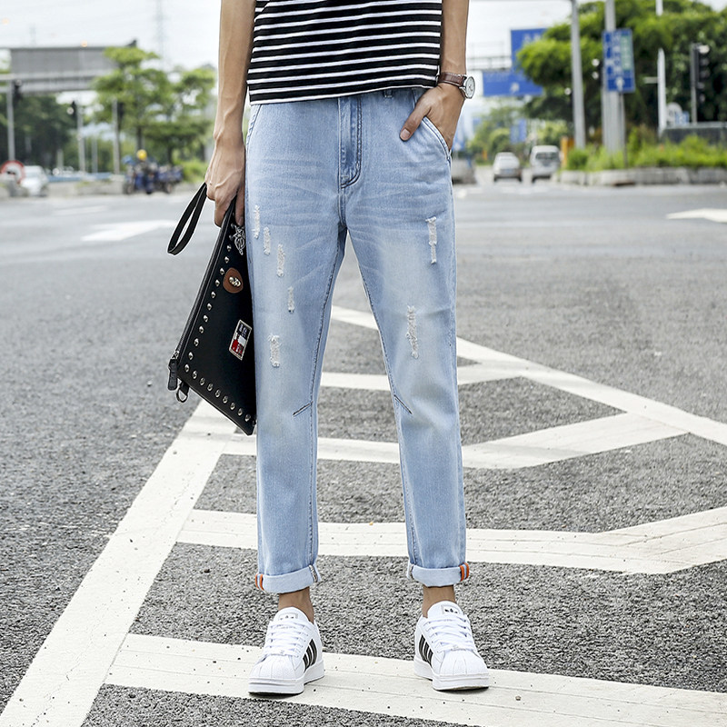 té section mince trous de vague rétro en jeans lâches neuf points collants de pantalons masculins harem droit de faisceau de jeans occasionnels Informations techniques - composition du matériau : 70% coton, 30% autres