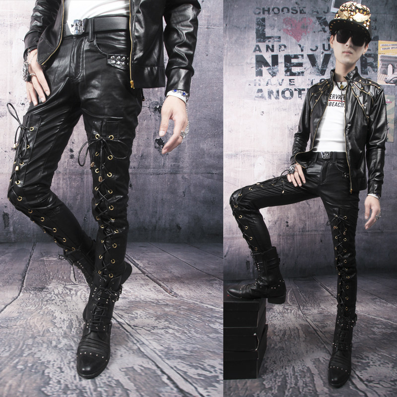 Pantalon cuir homme serré pour jeunesse printemps - Ref 1493757