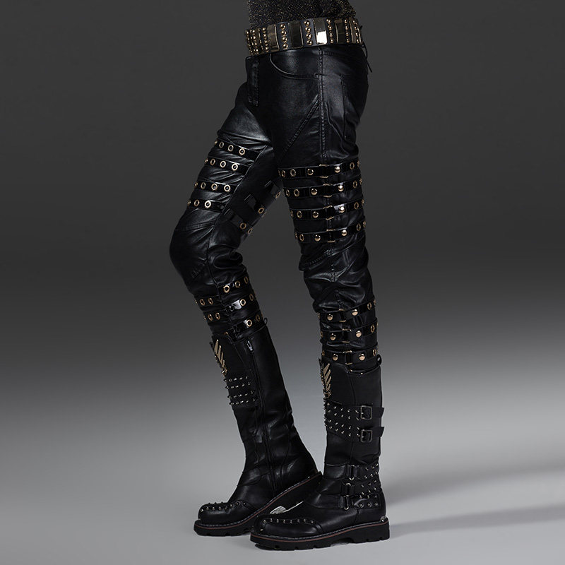 Pantalon cuir homme serré pour jeunesse printemps - Ref 1478793