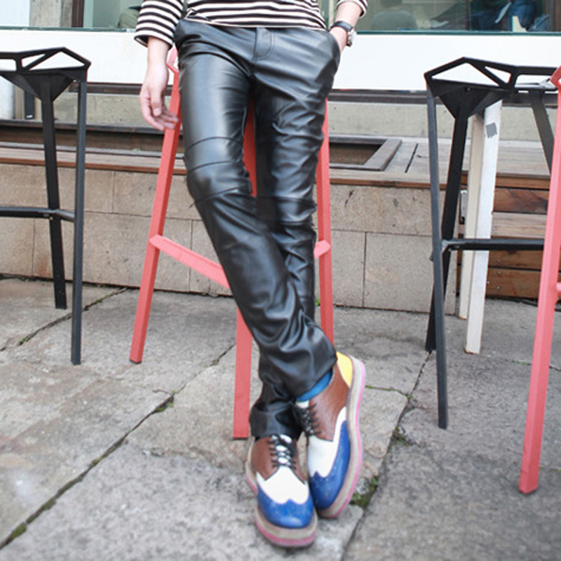pantalon en cuir genou de Velutluna automne et en hiver PU tissu s Slim hommes de la ligne latérale délicate