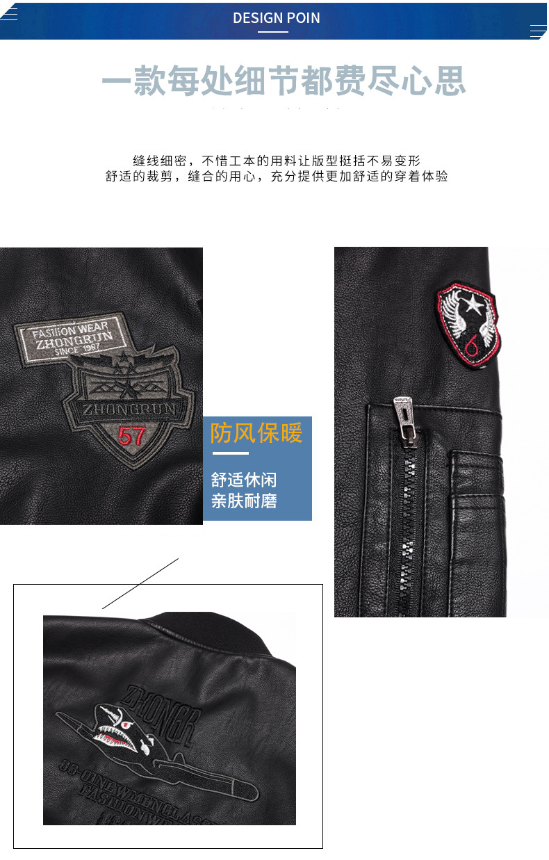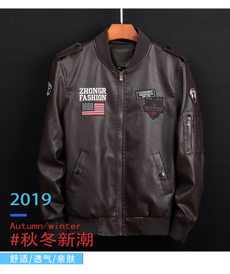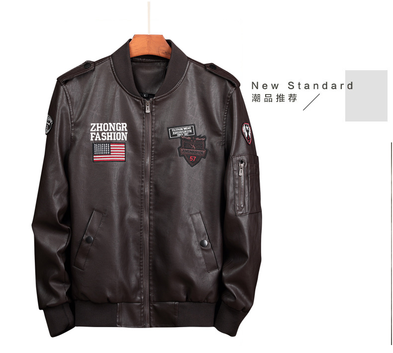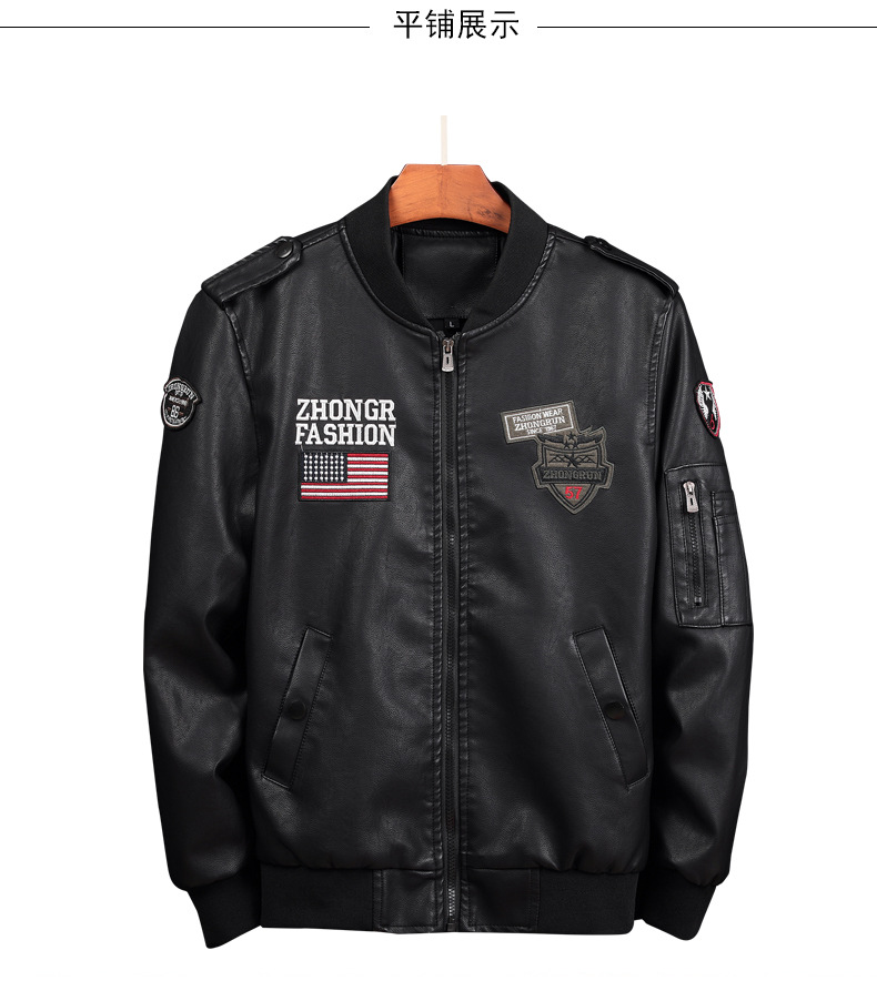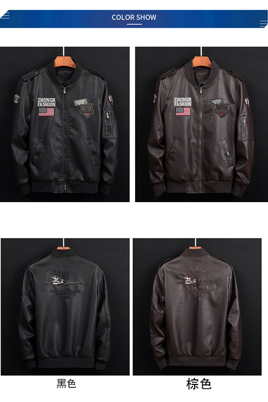 Automne et hiver nouveaux hommes de mode décontractée col montant en cuir lavé costume de vol veste en cuir veste Informations techniques